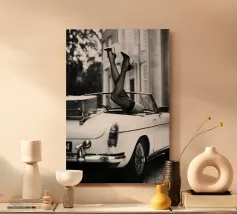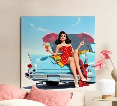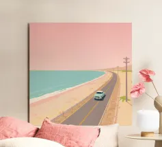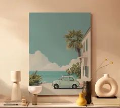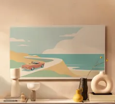 Experience the ultimate freedom and adventure with our vintage artwork. Feel the sun on your skin as you drive along the scenic coastline in a classic convertible. Imagine the wind in your hair as a carefree skater glides by the ocean. This masterpiece captures the nostalgia of a retro road trip and brings you closer to the beauty of an unlimited life. Perfect for any art and adventure enthusiast."