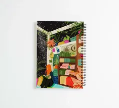 libri libreria lettura piante verde piante in vaso scaffale decorativo libri su scaffali donna che legge piante da interno amante dei libri piante appese cosmo stelle cielo notturno interno relax angolo accogliente arredamento astronomico tema celeste