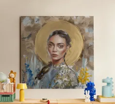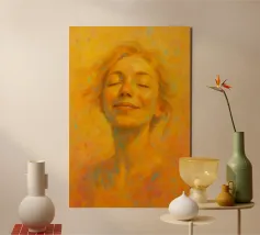 "Lightness Within" è un ritratto luminoso che cattura la gioia pura e radiosa. Una giovane donna, con gli occhi chiusi e sorridenti, è immersa in una luce dorata, circondata da tenui esplosioni di arancione, rosa e blu pastello. Le pennellate espressive e la ricca texture evocano calore, pace ed emozione, fondendo la tecnica classica del ritratto con un'energia fresca ed edificante. Questa stampa in edizione limitata è perfetta per i collezionisti che cercano positività e colore nei loro spazi. Disponibile in esclusiva presso ART.PIECE su Juniqe.