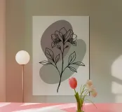 Line art minimalista di un singolo fiore di azalea alluminio dibond