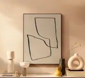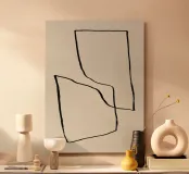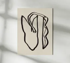 Due linee nere irregolari creano forme astratte su uno sfondo beige. La semplicità e la fluidità evocano un senso di calma ed equilibrio.
