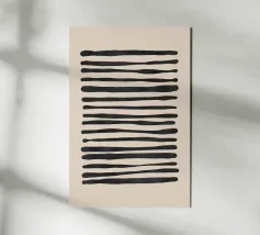 Moderno design astratto caratterizzato da linee verticali nere uniformemente distanziate che si estendono su un'area rettangolare marrone piena, creando un contrasto sorprendente e un effetto visivo dinamico.