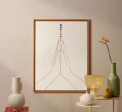 Una versione diversa dell'originale opera d'arte della linea Prayer Hands, che include la rappresentazione dei sette chakra: lasciate che serva da promemoria vicino al vostro tappetino da yoga, allo spazio dell'altare sacro, all'ufficio, al salotto, alla camera da letto o alla stanza del vostro bambino.