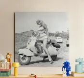 Marisa Allasio in posa su una Vespa alluminio dibond