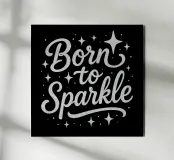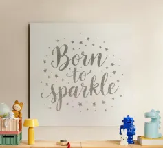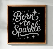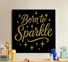 Messaggio "Born to sparkle" (nato per brillare) in lettere d'argento lucido alluminio dibond