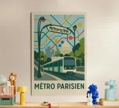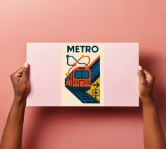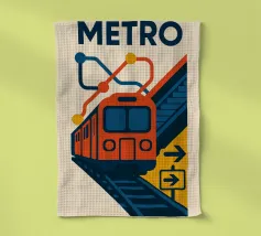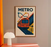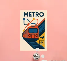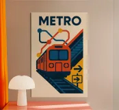 Immergetevi nell'elegante mondo dei trasporti urbani con questo poster "METRO" retrò e minimalista. Ideale per un interno moderno, combina design vintage, colori vivaci e spirito cittadino. Per gli amanti della città, delle linee metropolitane e della grafica pulita.
