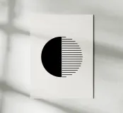 Minimalist geometric artwork with lines and circles in black alluminio dibond