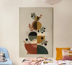 Un albero di Natale minimalista di ispirazione Bauhaus, composto da forme geometriche stratificate e texture punteggiate. La calda tavolozza di terracotta, senape, fard e verde bosco crea un'estetica raffinata ma giocosa. Questo pezzo contemporaneo dà un tocco moderno e artistico all'arredamento stagionale, perfetto per gli amanti del design e degli spazi creativi.