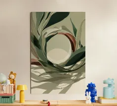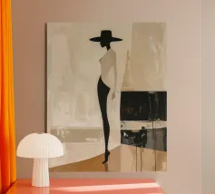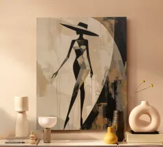 Una silhouette femminile stilizzata emerge da calde forme astratte, evocando eleganza, forza tranquilla e bellezza senza tempo. Ispirata ai ritagli di Matisse e alla composizione Bauhaus, quest'opera d'arte minimalista esplora la tensione poetica tra immobilità e movimento. Con i suoi toni terrosi e la sua consistenza tattile, invita alla contemplazione ed eleva ogni spazio moderno con grazia artistica.