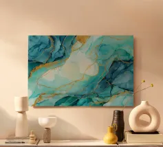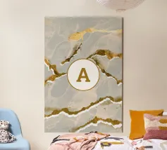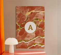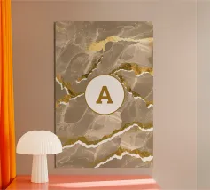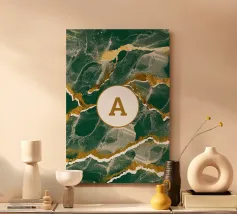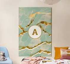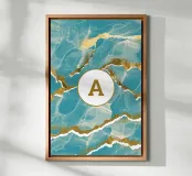 Un elegante disegno personalizzato con l'iniziale prescelta in un elegante effetto marmo con toni tropicali verde acqua e accenti dorati scintillanti. Elegante, moderna e senza tempo, questa opera d'arte è un regalo perfetto o una dichiarazione unica per la vostra casa. Aggiungete la vostra iniziale per creare un pezzo unico che unisce la raffinatezza a un tocco di glamour.