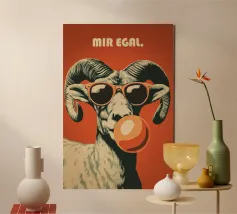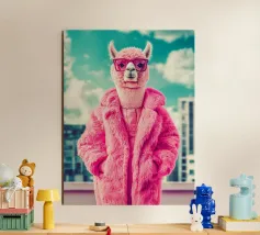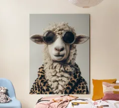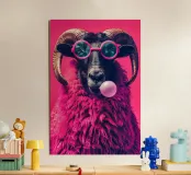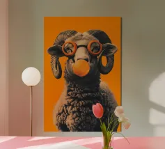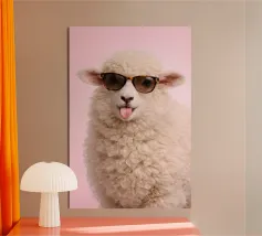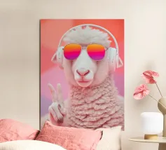 Montone pop art rosa con occhiali da sole alluminio dibond