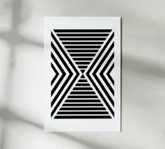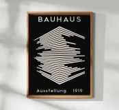 Questo straordinario design proveniente dalla mostra Bauhaus del 1919 combina la geometria minimalista con un'estetica moderna e senza tempo. La precisa disposizione delle linee su uno sfondo nero profondo crea un affascinante effetto tridimensionale. Perfetto per prodotti come murales, magliette, tazze o cuscini, questo motivo porta l'iconico stile Bauhaus nella vostra casa. Un must per gli amanti dell'arte moderna, del design grafico e della decorazione elegante.