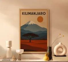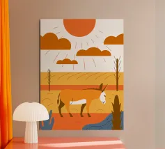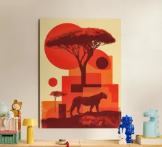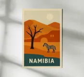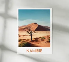 Un poster dai toni infuocati per una terra selvaggia. La Namibia, le sue dune arancioni, le zebre in libertà e gli alberi pietrificati prendono vita in una composizione suggestiva e stilizzata. Ideale per un arredamento potente, che combina natura estrema e bellezza grafica. Ogni curva racconta la storia dell'Africa.