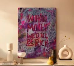 "Nevermind" è stato originariamente creato su tela con graffiti e acrilico e intende sostituire i noiosi slogan "Live, Laugh, Love".