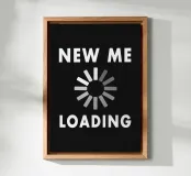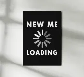 Un design elegante e moderno con una barra di avanzamento riempita a metà, di colore verde brillante. La frase "New Me Loading" è scritta in grassetto, con una tipografia futuristica, sopra la barra. Elementi sottili di ispirazione tecnologica, come i modelli di circuito, gli accenti di pixel e i gradienti dinamici sullo sfondo, creano un senso di trasformazione e crescita. Quest'opera d'arte simboleggia il progresso, il miglioramento personale e i nuovi inizi.