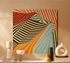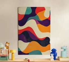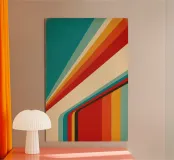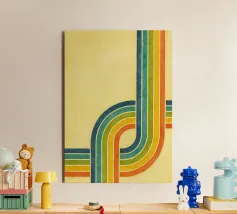 Un'eco visiva dell'arte astratta degli anni '70: questo poster combina il retro-futurismo con la colorazione minimalista. Ispirato al design di metà secolo e all'estetica spaziale, le bande di colore dinamicamente curve attirano letteralmente lo sguardo verso l'alto. La finitura invecchiata conferisce all'opera un fascino nostalgico, mentre la potente geometria rimane moderna. Per spazi architettonici luminosi e per chi cerca una dichiarazione piuttosto che una decorazione.