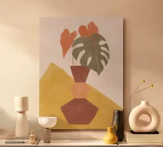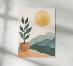 Una composizione minimalista in cui luce, ombra e forma si incontrano in un equilibrio tranquillo. Texture morbide, toni tenui e geometrie pulite creano un momento di quiete e delicata crescita. Quest'opera d'arte trasmette calma, chiarezza e respiro, ideale per interni che valorizzano la semplicità, la luce e il design accurato.