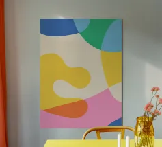Introducete un senso di calma e raffinatezza con "Organic Intersections", una splendida stampa astratta che cattura l'essenza del design del Mid-Century Modern. L'illustrazione presenta forme geometriche sovrapposte e dai bordi morbidi in una tavolozza accuratamente curata, che comprende un caldo arancione, un verde acqua polveroso, un giallo tenue, un rosa arrossato e un accento di blu marino. La composizione enfatizza l'equilibrio e l'armonia, rendendolo un pezzo perfetto per gli interni contemporanei e minimalisti. Ideale per aggiungere un tocco di colore tenue e un tocco retrò a un salotto, a una parete di galleria o a un ufficio moderno.