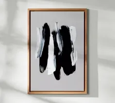 Paint splatters with shapes and lines in black and white alluminio dibond con Cornice Artbox