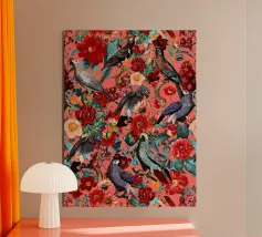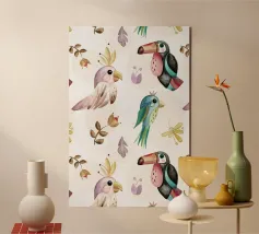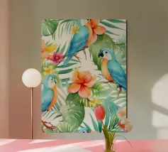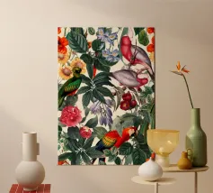 Pappagallo Cacatua Uccello Animale Tropicale Botanico Pianta Boho alluminio dibond