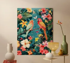 Lasciate che le vostre pareti prendano il volo con questa stampa murale di pappagalli e cacatua tropicali! Una miscela perfetta di fascino bohémien, bellezza botanica e illustrazioni di uccelli esotici, questa stampa porta un senso di natura e avventura in qualsiasi spazio. Caratterizzata da piante lussureggianti e vivaci animali tropicali, è ideale per gli amanti dell'arredamento bohémien, per gli appassionati di natura e per i collezionisti di arte ornitologica. In salotto, in camera da letto o nella cameretta, questa stampa di alta qualità aggiunge un tocco di freschezza e spirito libero alle pareti.
