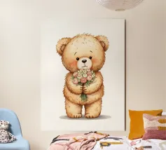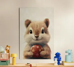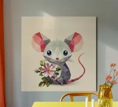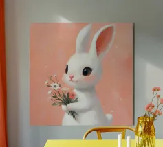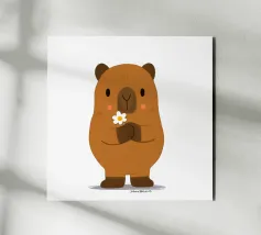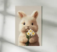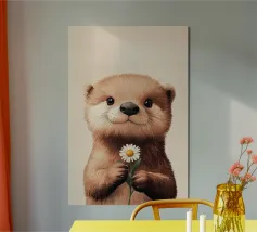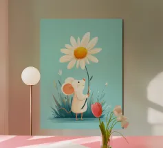 Piccola creatura che tiene in mano un fiore con un'espressione gentile alluminio dibond
