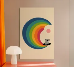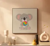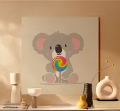 Un allegro koala con un lecca-lecca colorato. Ideale per illustrazioni a misura di bambino su dolci, animali e momenti felici. Koala giocoso in stile infantile Lecca-lecca a spirale colorato con i colori dell'arcobaleno Colori tenui e linee chiare Motivo allegro e affettuoso Perfetto per i temi legati ai bambini
