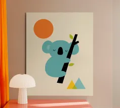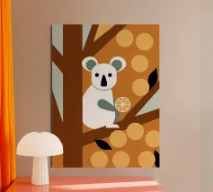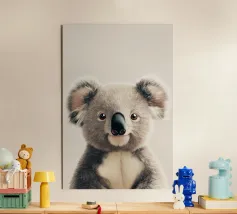 Piccolo koala allegro con un lecca-lecca colorato alluminio dibond