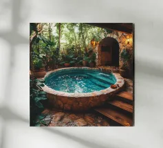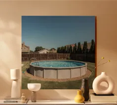 Piscina fuori terra con scala e terrazza in cortile alluminio dibond