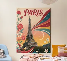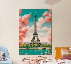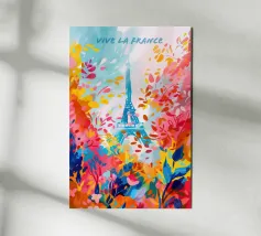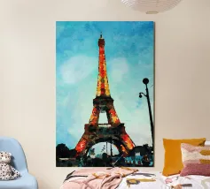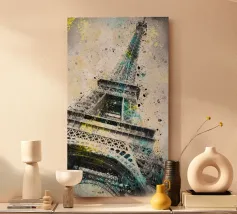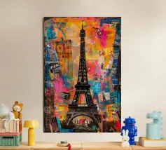 La Torre Eiffel è un punto di riferimento della capitale francese Parigi e simboleggia l'intera Francia in tutto il mondo. L'esposizione multipla della torre permette di vedere nel dettaglio i dettagli architettonici. Gli accenti di colore moderni e brillanti creano un'opera d'arte decorativa.