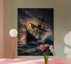 Poseidone è un'imponente opera d'arte che mostra il dio del mare nel suo volto (ritratto). Si erge dalle onde, circondato da un mare turbolento e da nuvole drammatiche.