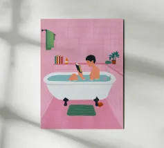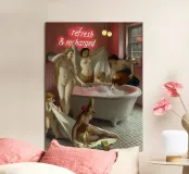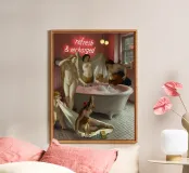 "In questo collage, bellissime ninfe, tratte da dipinti neoclassici, sono catturate nel momento più caro: l'inizio di una sessione di bagno. La scena emana serenità e ringiovanimento, riflessi nei volti delle ninfe, che sembrano immergersi non solo nell'acqua, ma in un rituale di rinnovamento dello spirito e dell'umore".