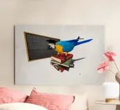 Illustrazione comica di un commento socio-politico sul modo in cui l'istruzione è diventata un meccanismo piuttosto che un sistema per sviluppare le menti. Tutto è copia, ripeti, copia, ripeti, a pappagallo.