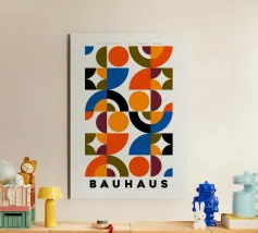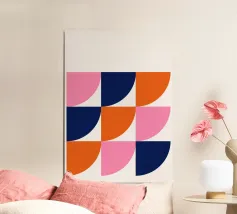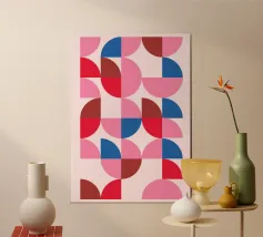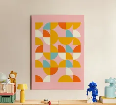 Un disegno astratto geometrico audace e giocoso, caratterizzato da un mix di cerchi, quadrati e forme curve in una vivace tavolozza di ispirazione rétro. La composizione equilibrata e i toni caldi lo rendono un'aggiunta elegante agli interni moderni, all'arredamento di metà secolo e alle pareti colorate delle gallerie. Perfetto per chi ama i motivi astratti e l'estetica geometrica senza tempo. Progettato da showmemars