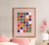 Un disegno astratto geometrico audace e giocoso, caratterizzato da un mix di cerchi, quadrati e forme curve in una vivace tavolozza di ispirazione rétro. La composizione equilibrata e i toni caldi lo rendono un'aggiunta elegante agli interni moderni, all'arredamento di metà secolo e alle pareti colorate delle gallerie. Perfetto per chi ama i motivi astratti e l'estetica geometrica senza tempo. Progettato da showmemars
