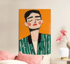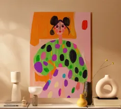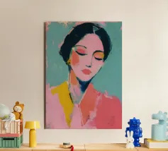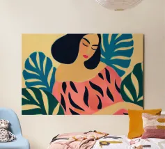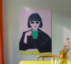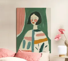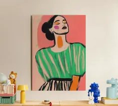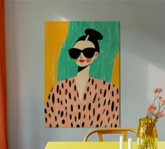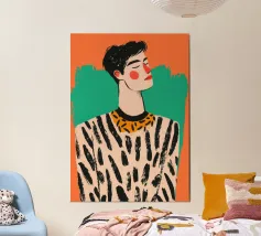 Ritratto stilizzato di una donna in stile color block alluminio dibond