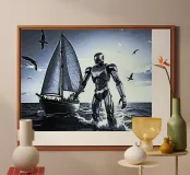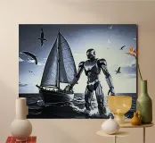 ROBOT AVEC VOILIER. Noir et blanc alluminio dibond