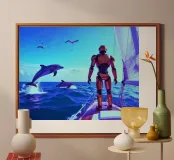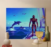 ROBOT SUR UN VOILIER. Eau bleue. alluminio dibond
