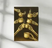 Scheletro con caffè in mano alluminio dibond