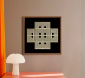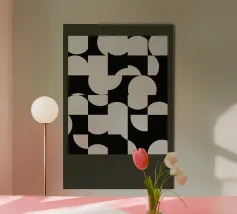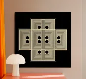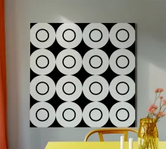 "Pattern of Emergence" è un'opera d'arte geometrica astratta che esplora come la bellezza complessa nasca da inizi semplici. L'opera presenta piccole sezioni ripetute che si combinano per formare un disegno più grande e intricato. I punti neri fungono da fulcro, evidenziando i punti di connessione e di transizione. L'opera suggerisce che i grandi disegni non appaiono e basta, ma emergono passo dopo passo, quando le parti più piccole lavorano insieme. Per questo motivo è un'opera d'arte da parete moderna molto interessante.