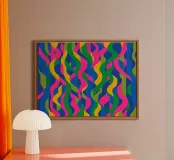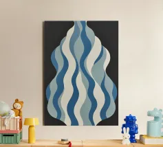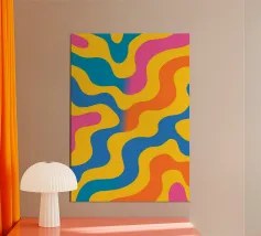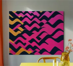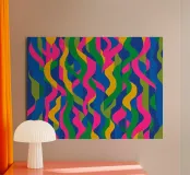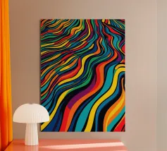 Un audace motivo astratto con un tocco di energia dinamica che simboleggia il movimento e la fluidità. Colori vivaci che evocano temi come l'acqua, la vita e il movimento. Una fusione innovativa di tradizione e modernità per interni contemporanei e minimalisti. Un linguaggio visivo unico che supera i confini culturali.