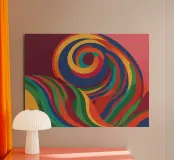 Un audace motivo astratto con un tocco di energia dinamica che simboleggia il movimento e la fluidità. Colori vivaci che evocano temi come l'acqua, la vita e il movimento. Una fusione innovativa di tradizione e modernità per interni contemporanei e minimalisti. Un linguaggio visivo unico che supera i confini culturali.