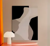 Forme organiche in nero, marrone, beige e colori neutri in un'opera d'arte contemporanea e minimalista adatta a interni moderni, scandinavi e in stile japandi.