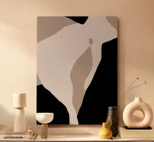 Forme organiche in nero, marrone, beige e colori neutri in un'opera d'arte contemporanea e minimalista adatta a interni moderni, scandinavi e in stile japandi.