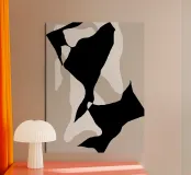Forme organiche in nero, marrone, beige e colori neutri in un'opera d'arte contemporanea e minimalista adatta a interni moderni, scandinavi e in stile japandi.