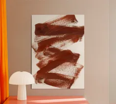 Una serie di forme astratte sviluppate dal gioco di luci e ombre delle persiane delle finestre. Terracotta, ruggine, crema e colori neutri.