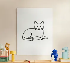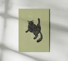 Divertente schizzo minimalista di un gatto nero che "ESISTE" con atteggiamento.