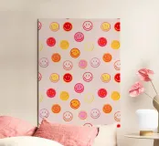 Smiling face colorful pattern in pink alluminio dibond