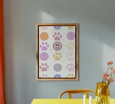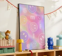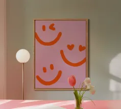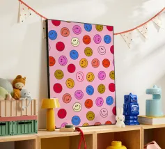 Smiling face colorful pattern in pink alluminio dibond con Cornice Artbox