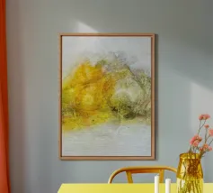 "Somewhere in my memory I" è un viaggio emotivo attraverso frammenti di momenti passati. Forme nebbiose nei toni caldi dell'arancio, del grigio tenue e del giallo pallido permeano l'immagine come ricordi sbiaditi. La composizione è come un diario visivo - intuitivo, fugace, con delicate sovrapposizioni che ricordano fotografie ingiallite o sequenze di sogni.